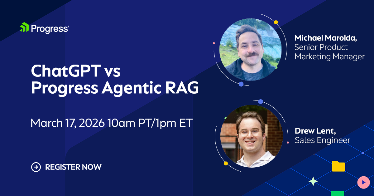 Your source for latest Progress® Agentic RAG webinars, whitepapers, blogs and more.