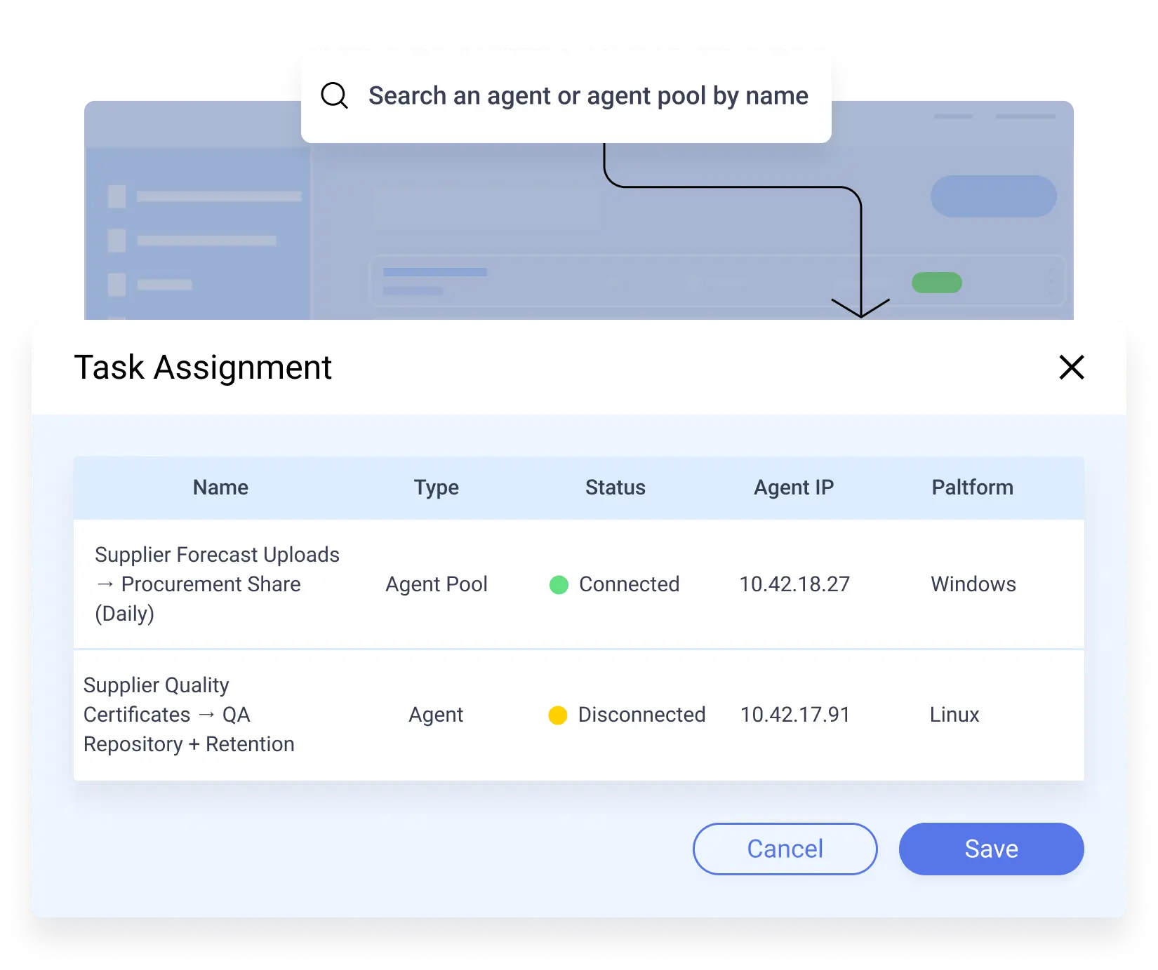 Run your most important automations with greater confidence by reducing single points of failure at the execution layer. If a self-hosted agent becomes unavailable, workflows can continue without manual reruns. Agent pooling helps protect SLAs and reduce off-hours escalations for overnight batch transfers, peak-volume periods and more.