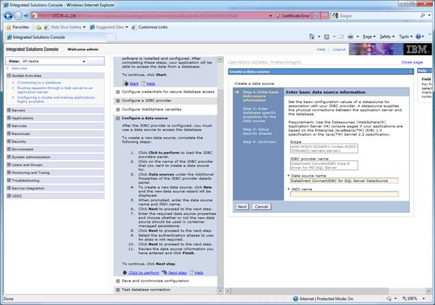 Click on the JDBC provider created above and then Click “Data Sources” to create a New data source.