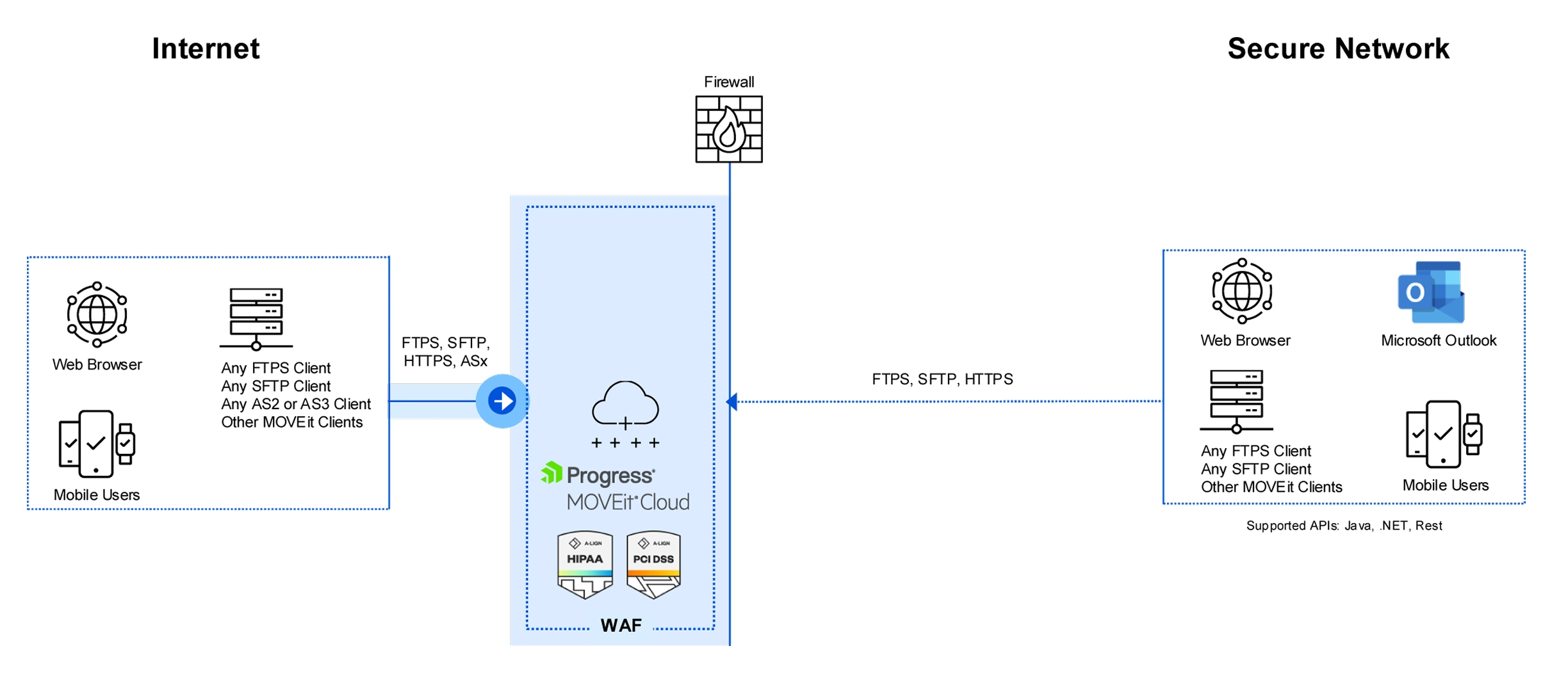 Take command of your file transfers and enterprise architecture with Progress® MOVEit® Cloud, a managed file transfer-as-a-service hosted in the Azure Cloud. This cloud file transfer service consolidates data exchanges into a single system, enhancing visibility and management of core business processes. Our experts maintain a robust cloud-managed file transfer deployment by implementing the latest upgrades and security updates, enabling your team to focus on key projects that drive business growth.